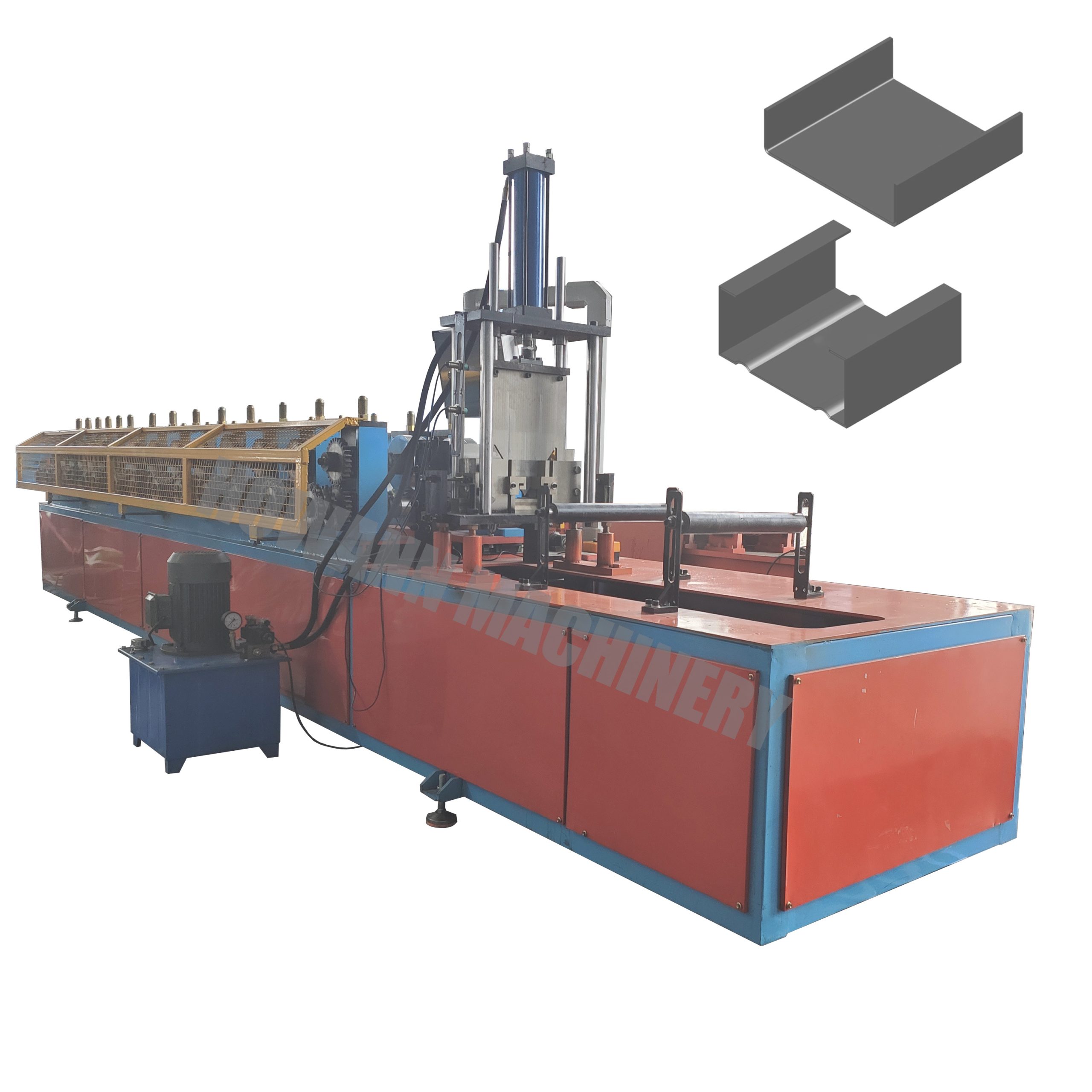C/U ROLL FORMING MACHINE is a CU type purlin roll forming machine used in the production of steel structure industry.The finished product produced by machinery and equipment is CU steel, which is mostly used for the support of beams and wall beams in housing construction and factory buildings.