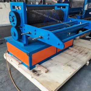 Manual uncoiler—feeding device—rolling form—speed, length, pieces set by PLC—hydraulic mold post cutting—collection table