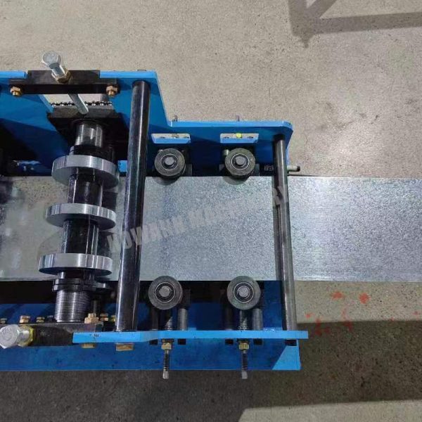 Manual uncoiler—feeding device—rolling form—speed, length, pieces set by PLC—hydraulic mold post cutting—collection table