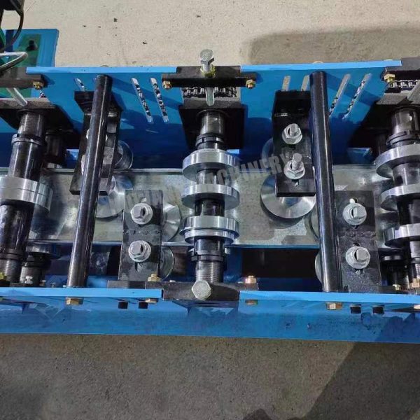 Manual uncoiler—feeding device—rolling form—speed, length, pieces set by PLC—hydraulic mold post cutting—collection table